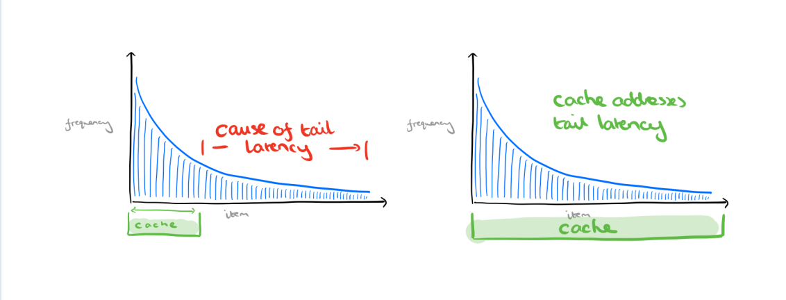 对于那些Frequency比较低的访问数据,我们就会看到如图的Tail, 而对这个Tail里面的数据的访问都会导致非常高的延迟,是为Tail Latency。